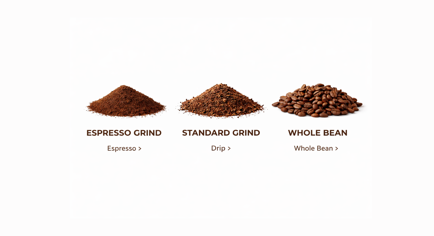 Every cup starts with the right grind. That’s why we offer three options, each designed to match how you brew and how you like your coffee to hit.